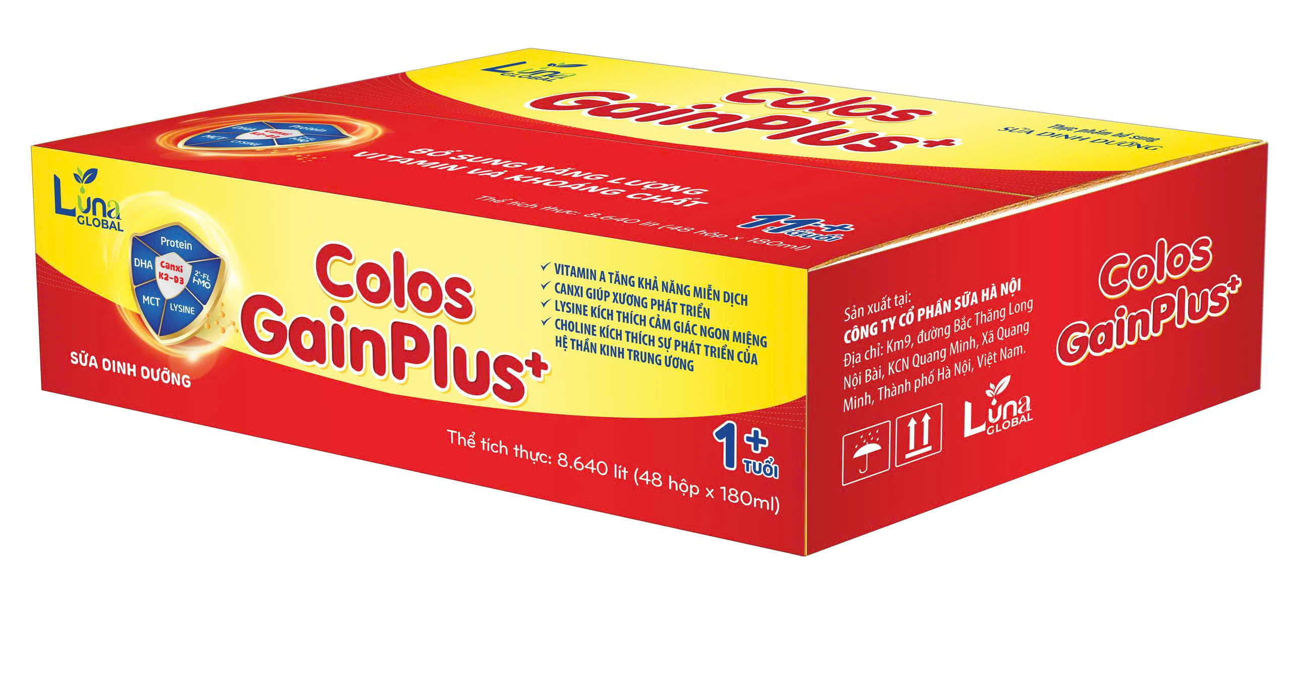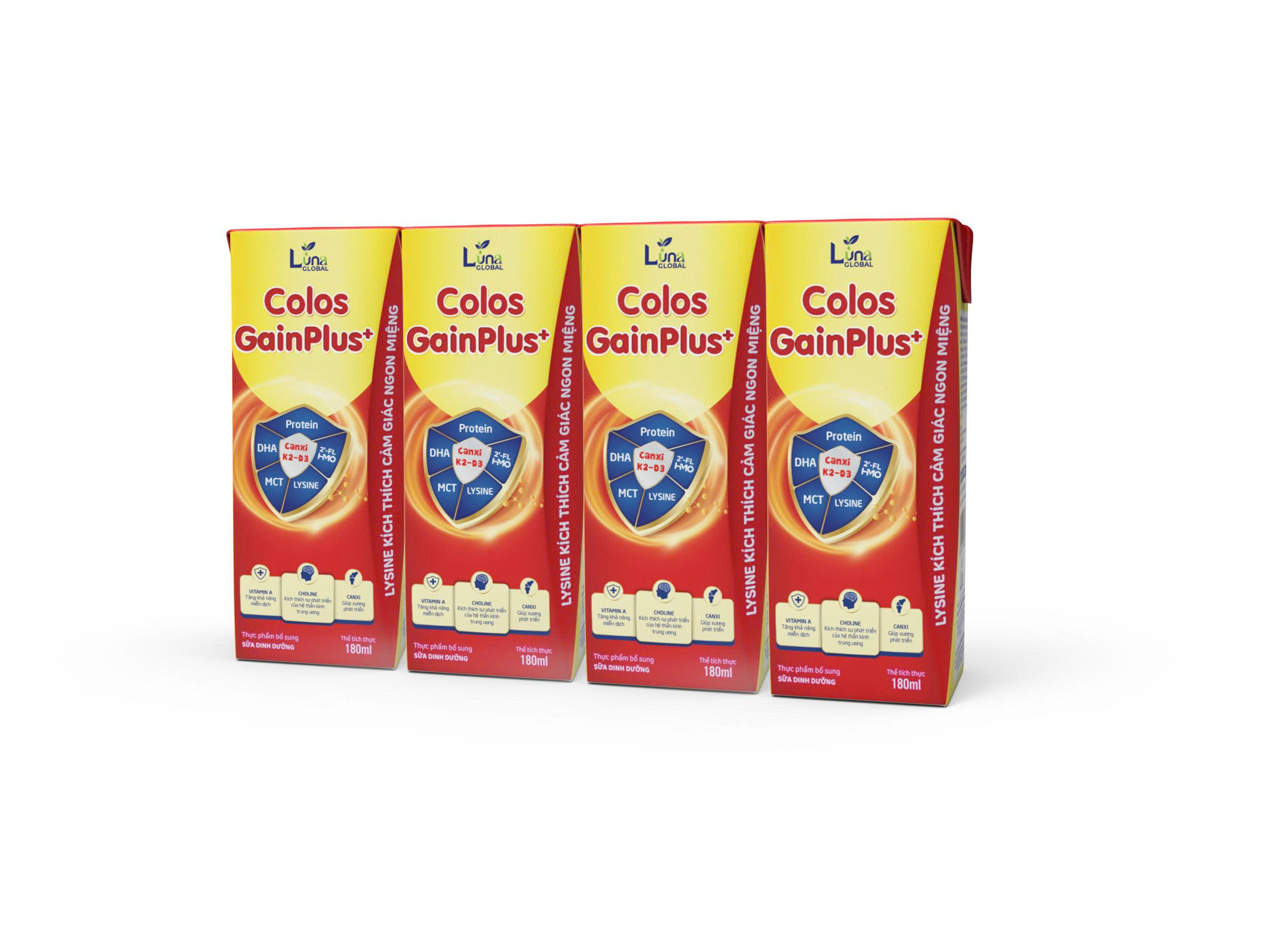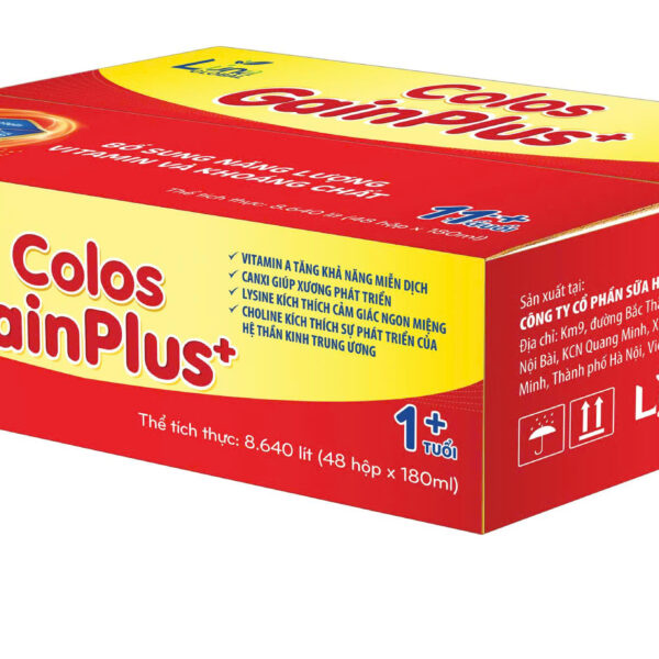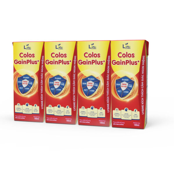 Sản phẩm Colos Gain Plus pha sẵn có sự kết hợp giữa công thức dinh dưỡng đột phá cao năng lượng (đậm độ dinh dưỡng chuẩn 1.0 kcal/ml), với các dưỡng chất dễ hấp thu MCT, Whey protein và Lysine giúp cải thiện biếng ăn để đạt tổng thể giúp trẻ tăng cân tốt. Đặc biệt, Colos Gain được bổ sung sữa non ColosIgG24h – sữa non thu trong 24h đầu tiên nhập khẩu độc quyền từ Mỹ giúp cung cấp kháng thể IgG để tăng cường miễn dịch. Kháng thể IgG trong sữa non là kháng thể mạnh nhất trong cơ thể có khả năng gắn kết giúp trẻ hạn chế ốm vặt, phòng ngừa nhiễm khuẩn hô hấp, tiêu hoá.